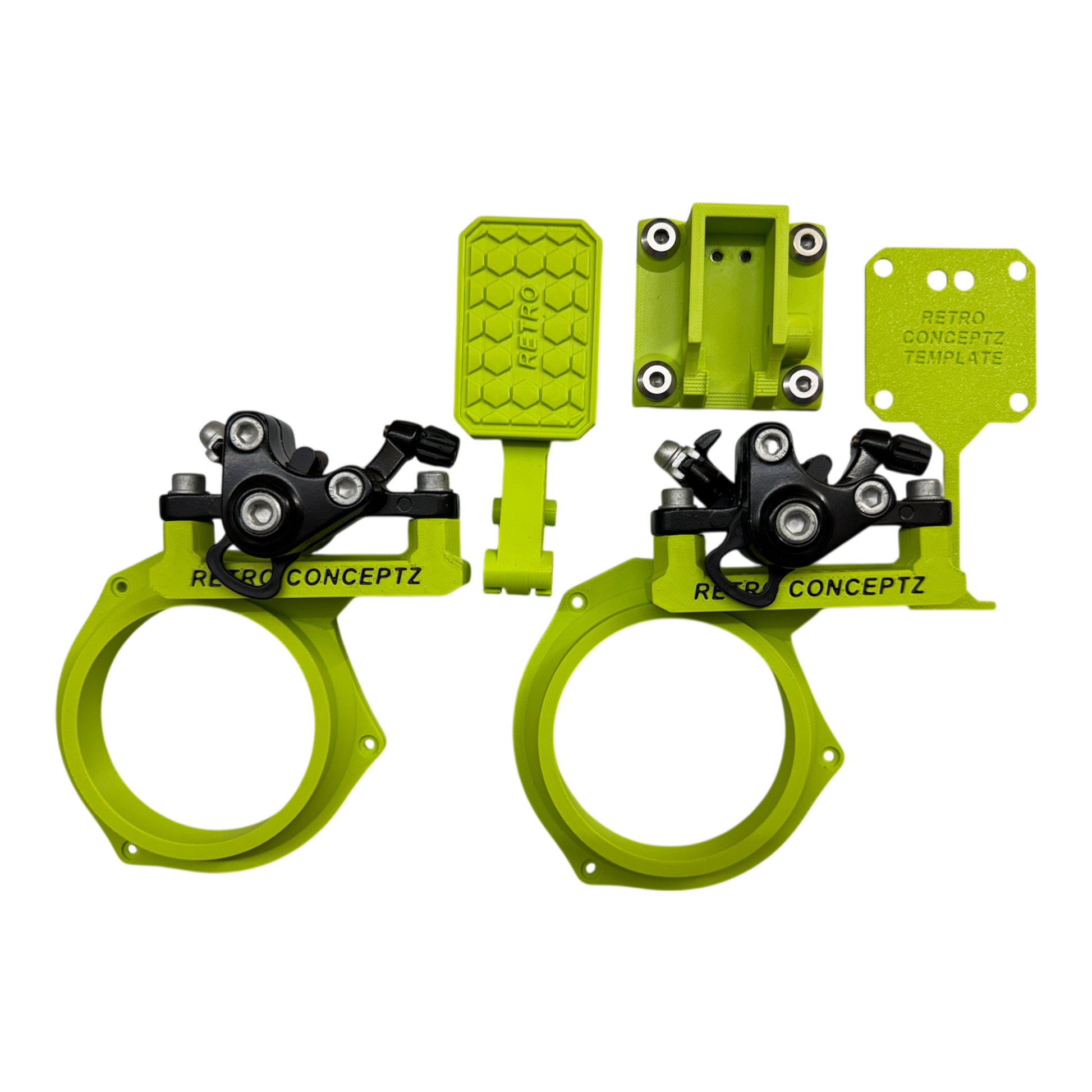 Our Powerwheels Brake Kit delivers perfect fitment with vibrant colors (black brake hubs!). Compatible with 7R Gearbox & Retro-Box. Brake Kit offers 3 forms of adjustability. Compatible with various chassis and a complete Plug-N-Play system. Stop in style!